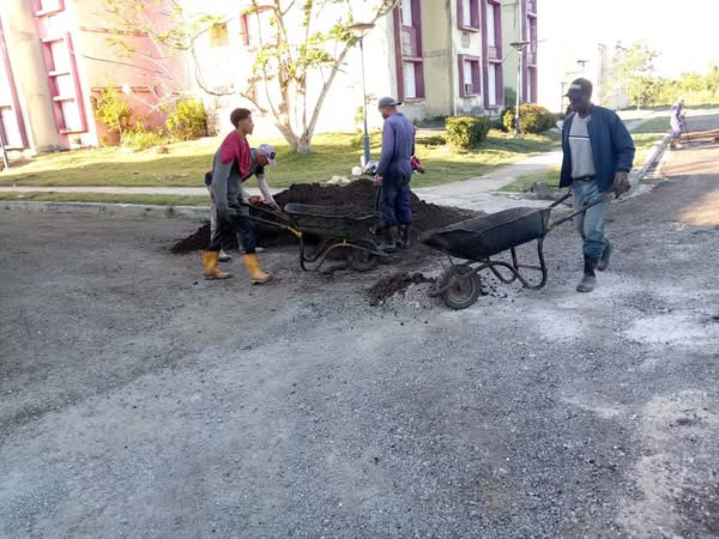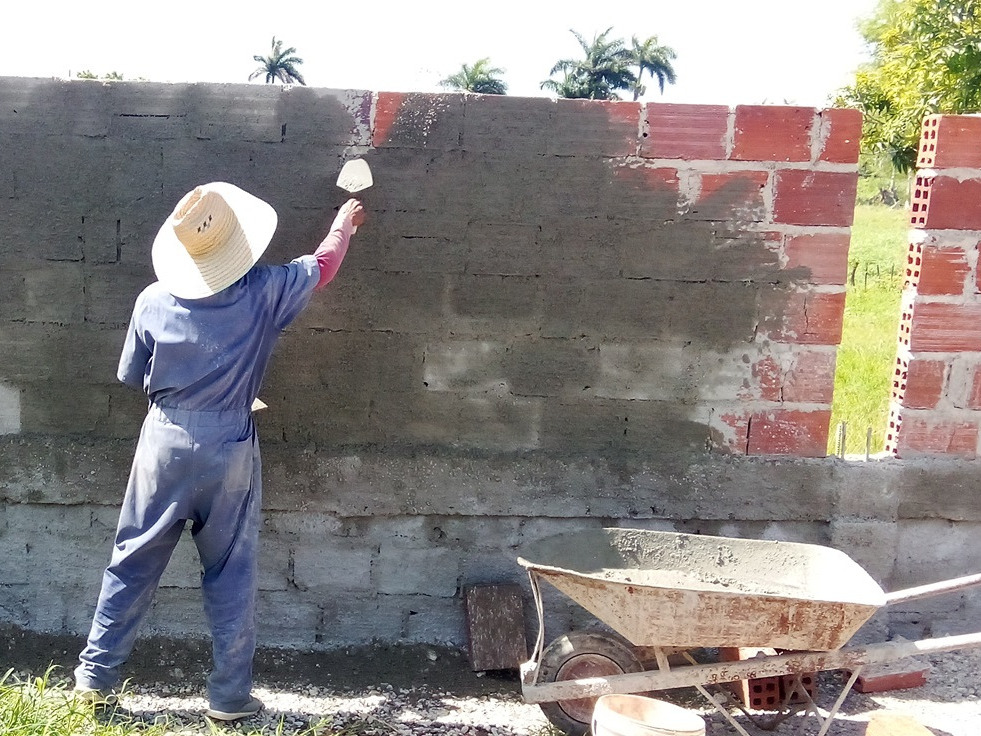 Trabajo en la construcción de un muro perimetral y en la pavimentación de áreas de la CCS Agustin Marrero de la Habana del Este.
